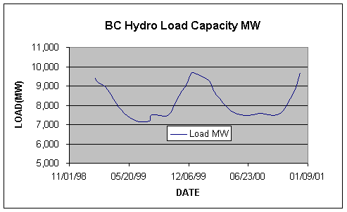 withhold ~2,000 MW over a six month period in 2000 to drive up the clearing price for power they sold in California. Figure 2, from the Cal-ISO on California Oregon Intertie Congestion Frequency demonstrates that while BC Hydro had more than enough load Capacity, they failed to import significant power during the months of May, June, August, and September 2000.